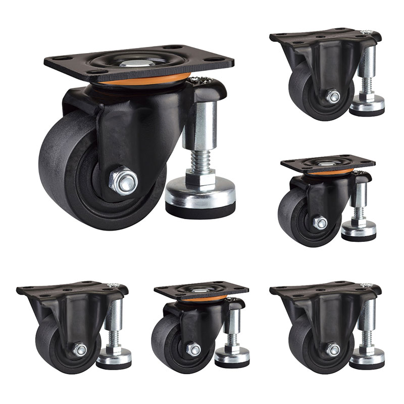 Οι τροχοί πολυαμιδίου βαρέως τύπου προσφέρουν ανώτερη ανθεκτικότητα και ικανότητα φόρτωσης για βιομηχανικές εφαρμογές. Μόλις ο εξοπλισμός μετατραπεί στην επιθυμητή θέση, ο χρήστης μειώνει το μαξιλάρι κατά της κατάρρευσης μέχρι να πατηθεί στο πάτωμα. Αυτό ανακουφίζει τον τροχό του βάρους του αντικειμένου και κάνει το στοιχείο σταθερό. Το μαξιλάρι ισοπέδωσης εξαλείφει ή μειώνει οποιαδήποτε δόνηση ή κίνηση που παραδοσιακά συνδέεται με τυπικά συστήματα πέδησης. Οι τροχοί πολυαμιδίου υψηλής αντοχής αντιστέκονται στη φθορά, τα χημικά και τα βαριά φορτία, ενώ ο μηχανισμός ισοπέδωσης εξασφαλίζει σταθερότητα σε ανομοιογενείς επιφάνειες. Ιδανικό για μηχανήματα, πάγκους εργασίας και εξοπλισμό που απαιτούν κινητικότητα και ασφαλή τοποθέτηση.